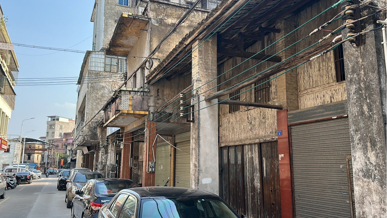 花东镇推广社区复兴街2号—9号,现状建筑面积约1450平方米,建于上世纪60年代。建筑因长年风雨侵蚀、结构严重老化,经专业机构鉴定为D级危房,存在墙体开裂、屋顶渗漏、外立面斑驳脱落等问题,不仅与周边骑楼老街历史风貌格格不入,更形成安全隐患突出、城市面貌滞后的治理短板,亟待系统整治提升。